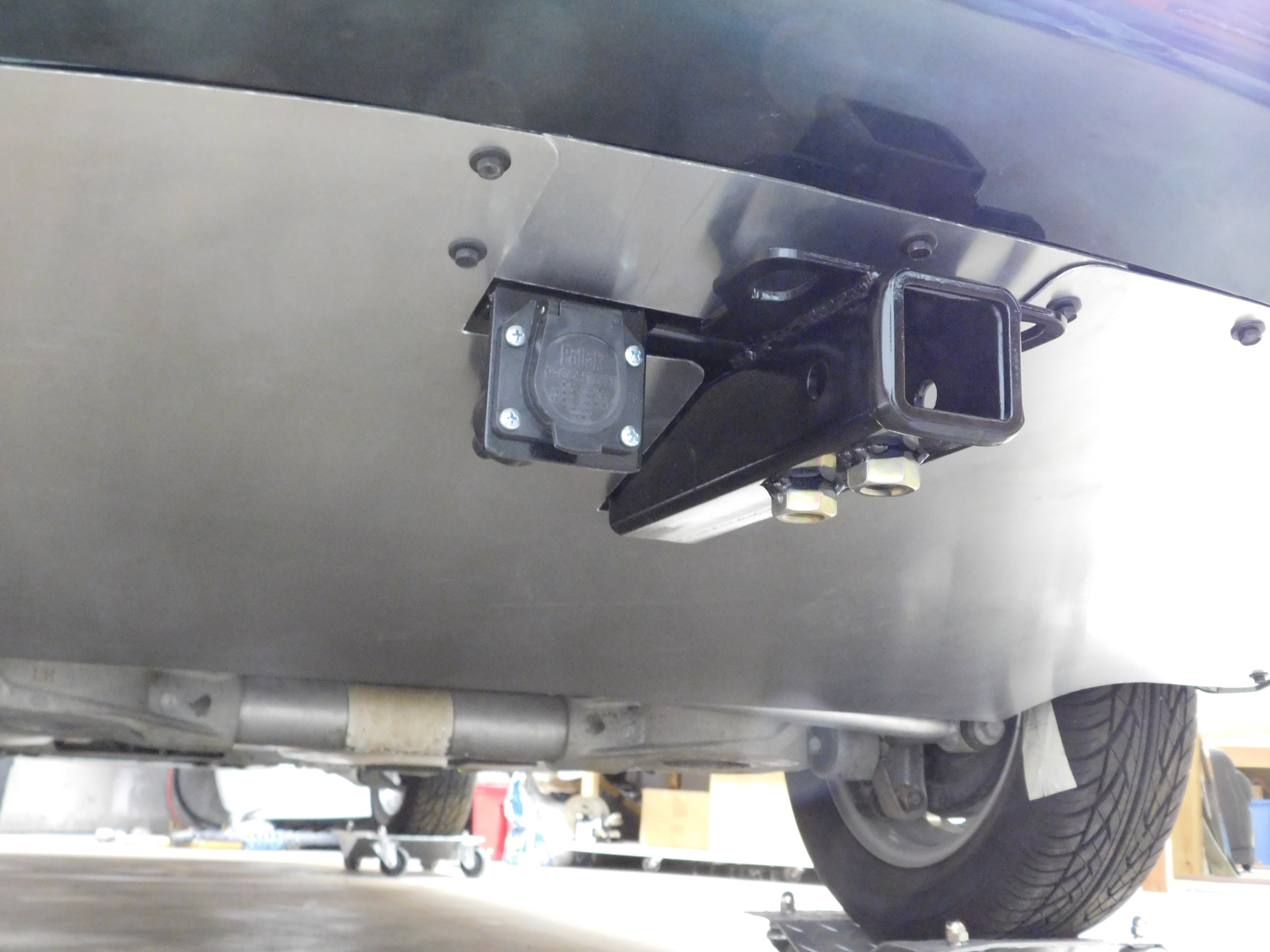 structure above the hitch assembly (below the floor), and 'L' brackets